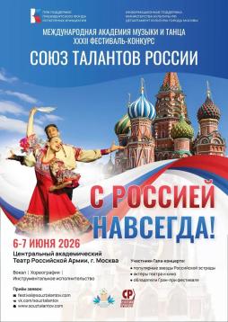 Саратовцев и жителей Саратовской области приглашают к участию в XXXII Международном фестивале-конкурсе «Союз талантов России», который состоится в Москве в 2026 году! 6 июня — конкурсный день 7 июня — Праздничный Гала-концерт «С РОССИЕЙ НАВСЕГДА!»